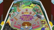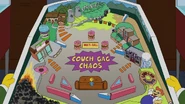 A remake of this couch gag appears on the season 36 episode, "The Last Man Expanding". In this new version, the Simpsons are sent on the "Couch Gag Chaos" pinball machine, where they're ricocheted against various buildings in town, before ending up in the couch's holes, except Homer which lands on his work station.