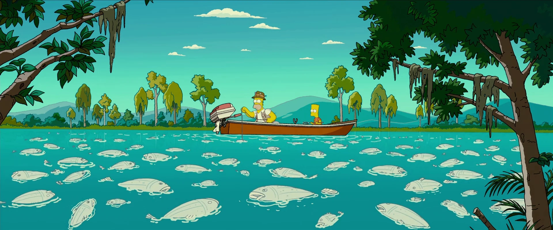 In The Simpsons Movie, Homer uses a bug zapper to electrocute the fish in a lake.