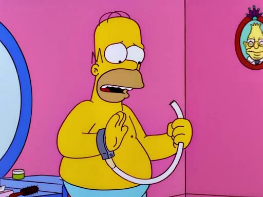 In "The Parent Rap", Homer escapes with Marge from a tether and stocks.