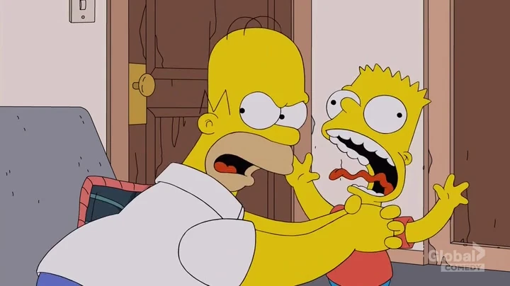 Homer often strangles Bart, and has also choked others. In "Like Father, Like Clown", when he tells Bart he doesn't have to follow in his footsteps, Bart says he won’t even use the bathroom after him, and Homer strangles him. In "Lisa's Pony", a flashback of him being too busy strangling Bart to notice Lisa saying "Dada". In "Radio Bart", he strangles Bart after he realizes Bart fooled him with a fake radio announcement. In "Lisa's First Word", he strangles baby Bart for calling him "Domer" and for flushing his wallet down the toilet. In "So It's Come to This: A Simpsons Clip Show", he strangles Bart after he admits to shaking up the beer can. In "Secrets of a Successful Marriage", while teaching a class on building a successful marriage, Homer strangles Bart when he says that Homer dared him to steal mail and throw it down a sewer. In "Lisa the Tree Hugger", while protesting in a tree, Lisa looks at the house through binoculars and sees Homer strangling Bart. In "Simpsoncalifragilisticexpiala-D'oh-cious", just when magical nanny Shary Bobbins thinks she's cured the family’s problems, she sees Homer strangling Bart. In "Children of a Lesser Clod", he strangles Bart after he shows video of Homer’s bad behavior as he’s receiving a citizenship award. In "Brawl in the Family", he strangles Bart after he discovers that he's been cheating at Monopoly by using Lego blocks as hotels. In "Mayored to the Mob", he knocks Bart and Lisa unconscious with a Vulcan death grip maneuver. In The Simpsons Movie, Homer shakes the TV antenna while Bart is on it, endangering his life.