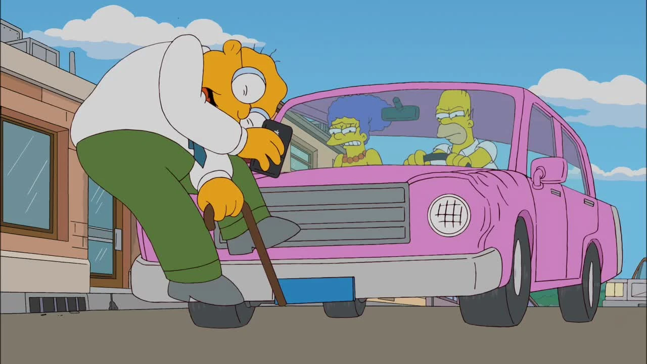 In "The Springfield Connection", Officer Marge catches Homer illegally parked horizontally across three parking spaces reserved for the handicapped. When asked to move Homer refuses to comply.