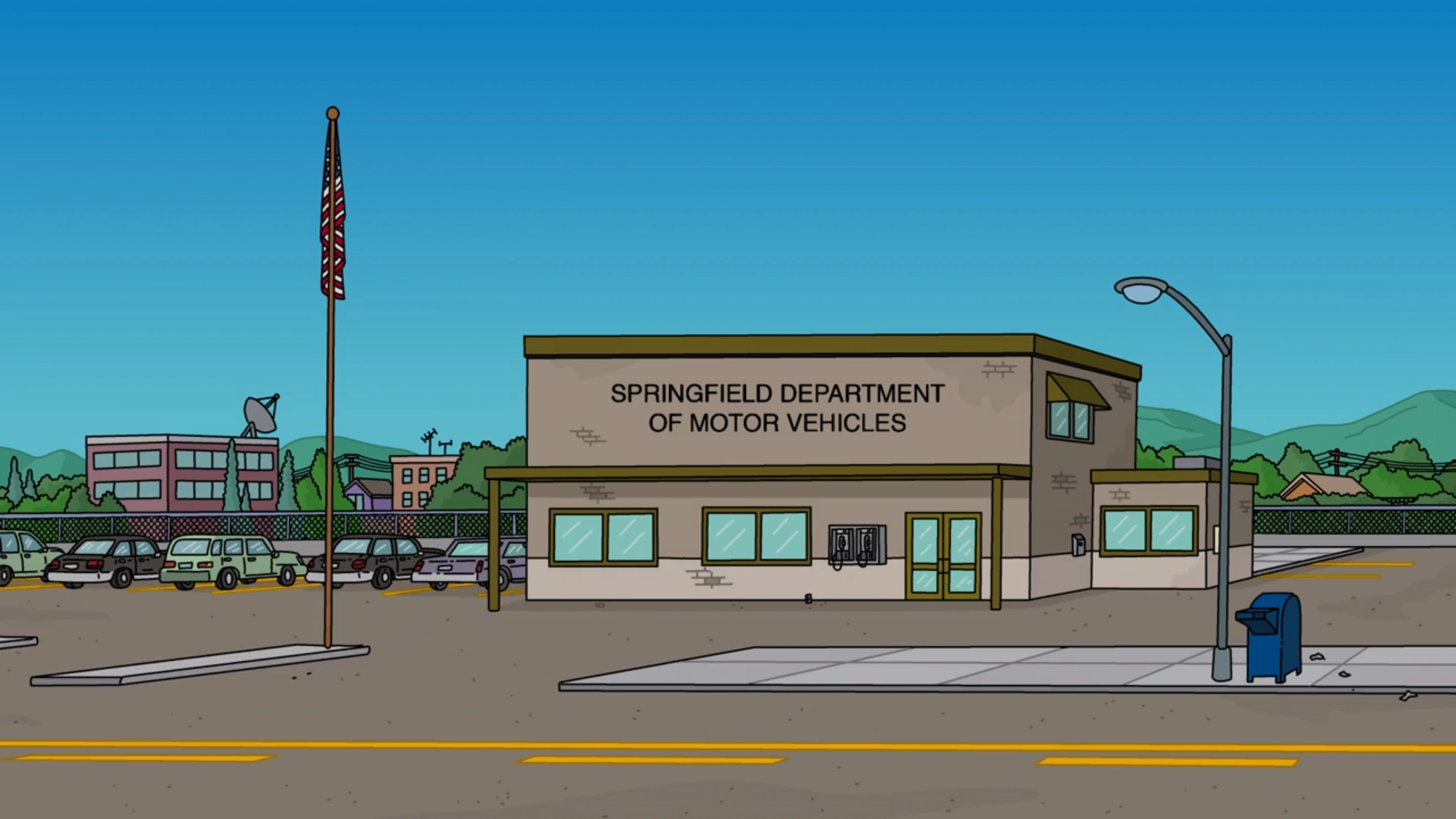 The DMV is where Patty and Selma work usually at the counter as well issuing licenses, drivers' road tests and written examinations and often depicted as bored, unhelpful and outright rude. The lines are often extremely long and out the door. Patty and Selma make a joke to Bart that some days they do not let the line move at all which they call weekdays.
