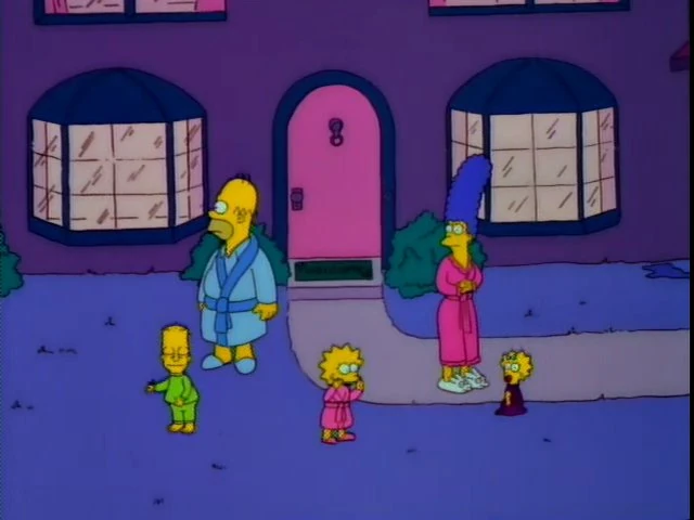 When the Simpson family is first calling for Santa's Little Helper to come back, Lisa's neck and the top of her chest briefly turn pink like her robe.