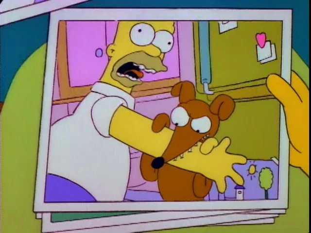 Mr. Burns said that "Dogs are idiots" despite owning numerous attack dogs himself. Mr. Burns only cares about money and no one else, not even his assistant Smithers who pines for him, and it's pretty much shown in this episode -- and others -- that he has dogs as a way to scare off people and trains them to be vicious, soulless killers.