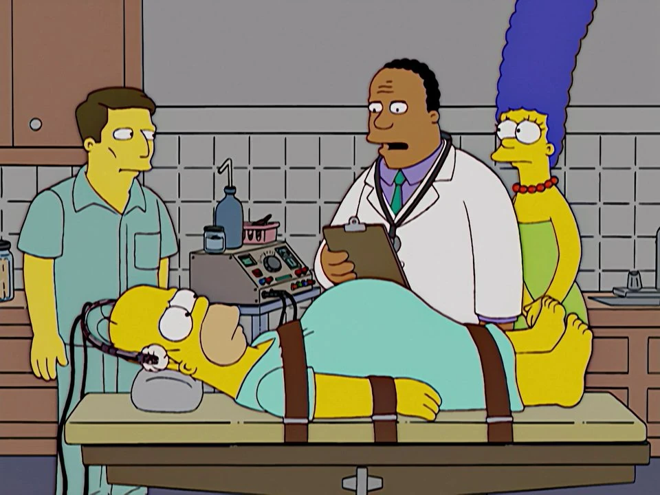 When Homer calls "Ray" to save him from the mental hospital's medical restraint, Dr. Hibbert's eyebrows are missing. Later, after Bart tells Homer that he only saw him talking to himself, Dr. Hibbert's eyebrows are colored in.