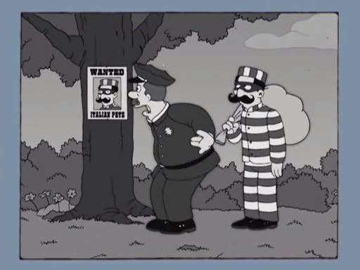 Italian Pete stole chickens and was then chased by Officer Joe.