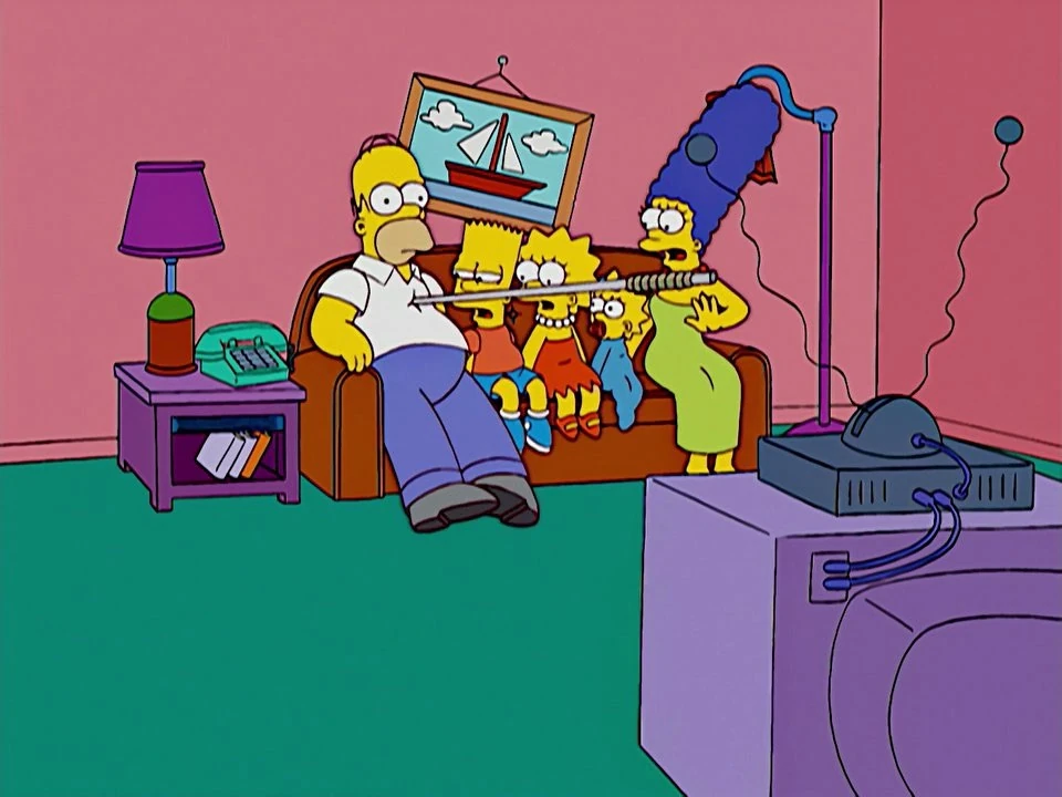 The Simpsons sit on the couch as normal. Lisa looks at the camera and says, "What? Can't we sit on the couch without something happening?" As if to prove her otherwise, a spear impales Homer in the chest and he exclaims, "D'oh!"