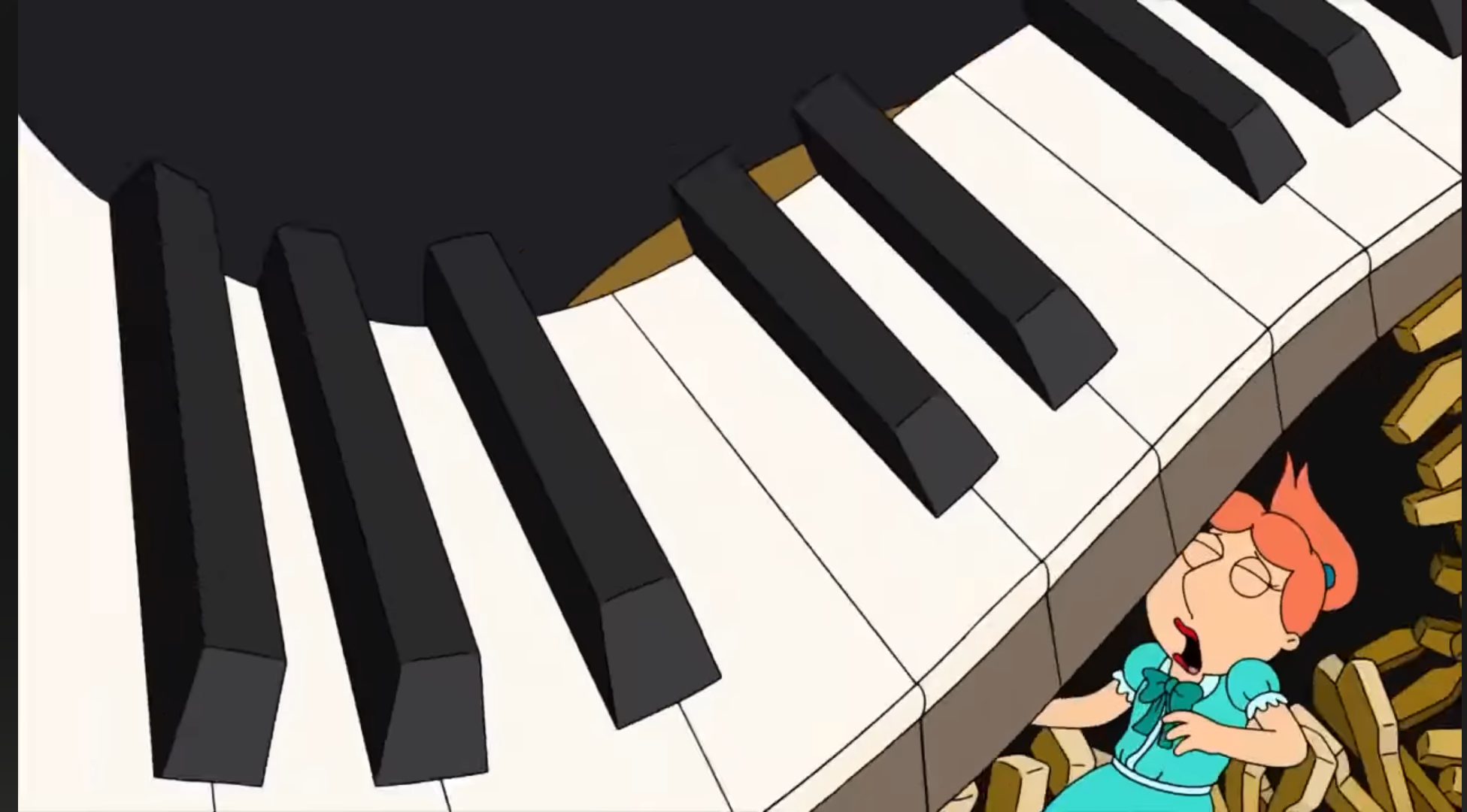 In "Prescription Heroine", Lois Is the nightmare episode, on Piano scared who crashed Is out, Lois who saying Screaming like Lisa Simpson. When Lisa saying "Aaaaahhhh!!!", Young Lois who feeling Scared. |
