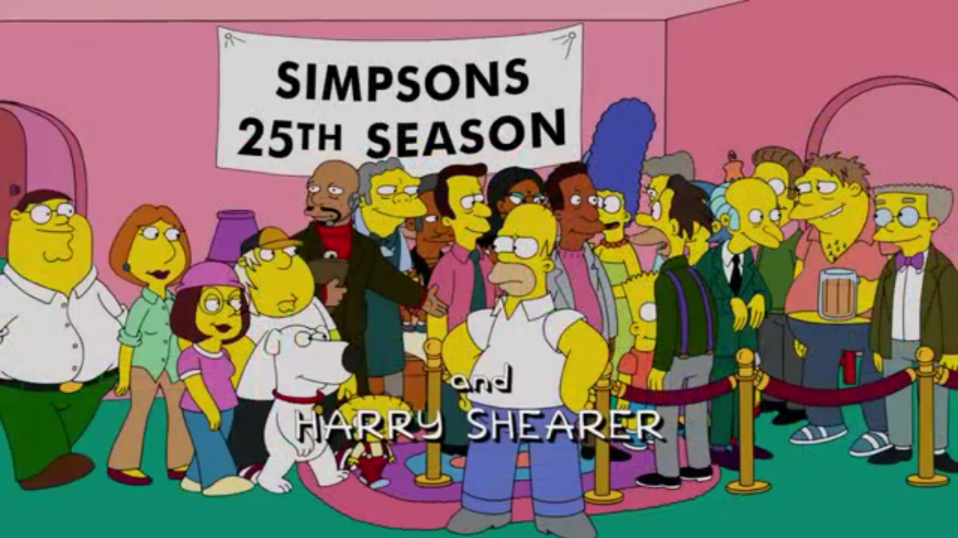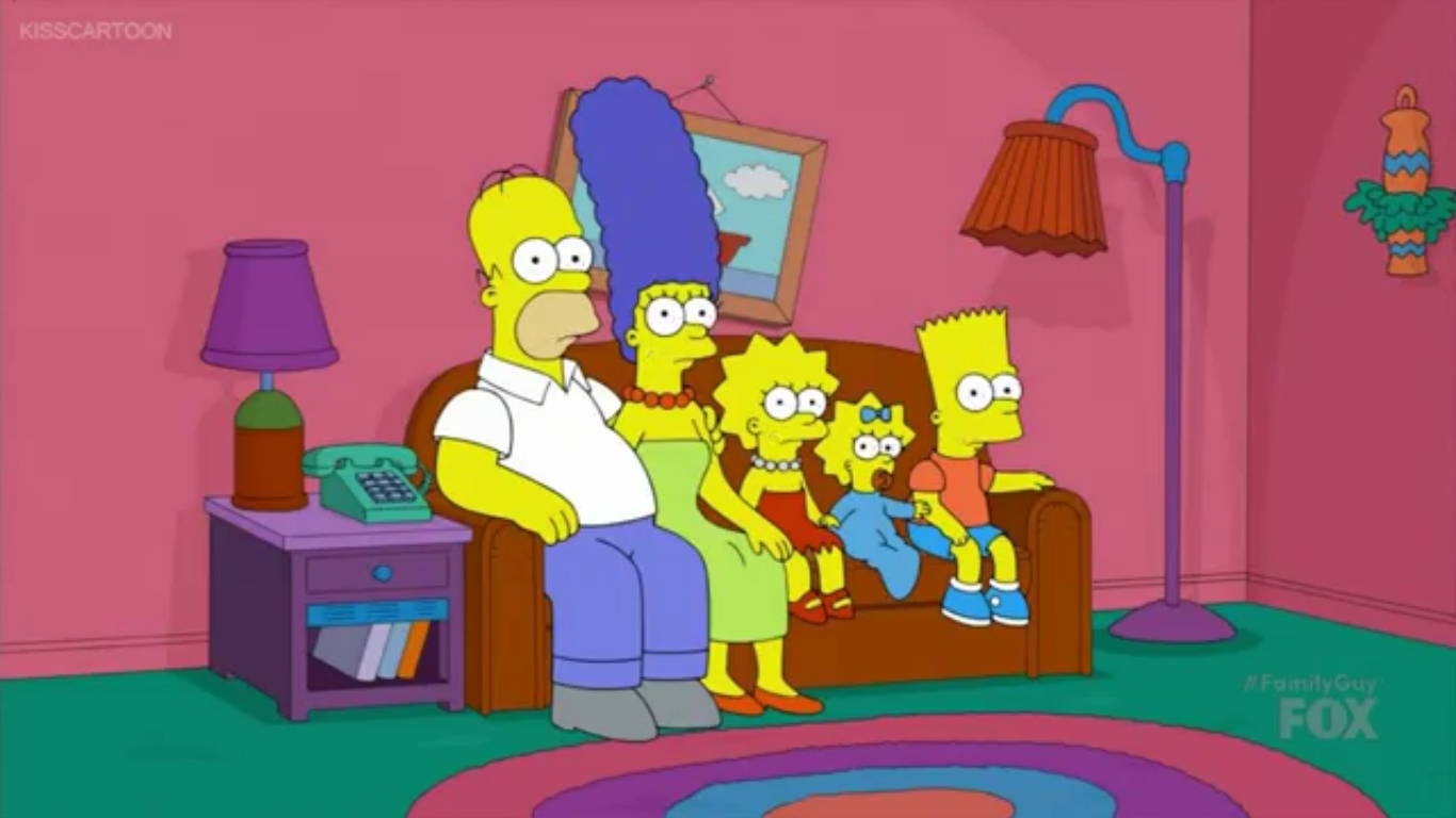 The Simpson family meet the Griffin family in the 2014 crossover episode "The Simpsons Guy".