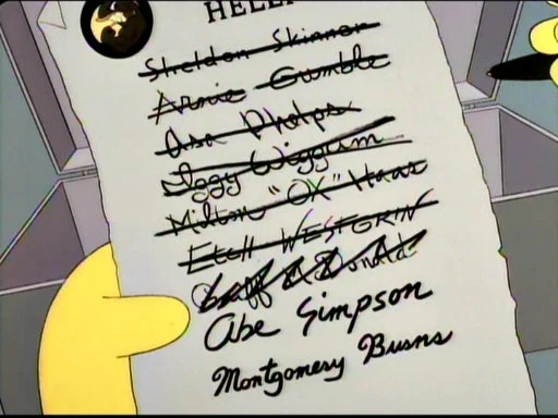 - Private Charles Montgomery Burns (expelled post-war for greed, repeated attempts to murder Abe by proxy, and attempting to murder Abe's grandson Bart)