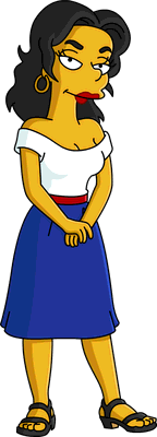 At first, she knew nothing of her husband's multiple murder attempts. When she does become aware, she helps Sideshow Bob try to kill the Simpson family. She and Gino, along with Sideshow Bob's mother, father and brother attempted to have Bart incinerated to get revenge.