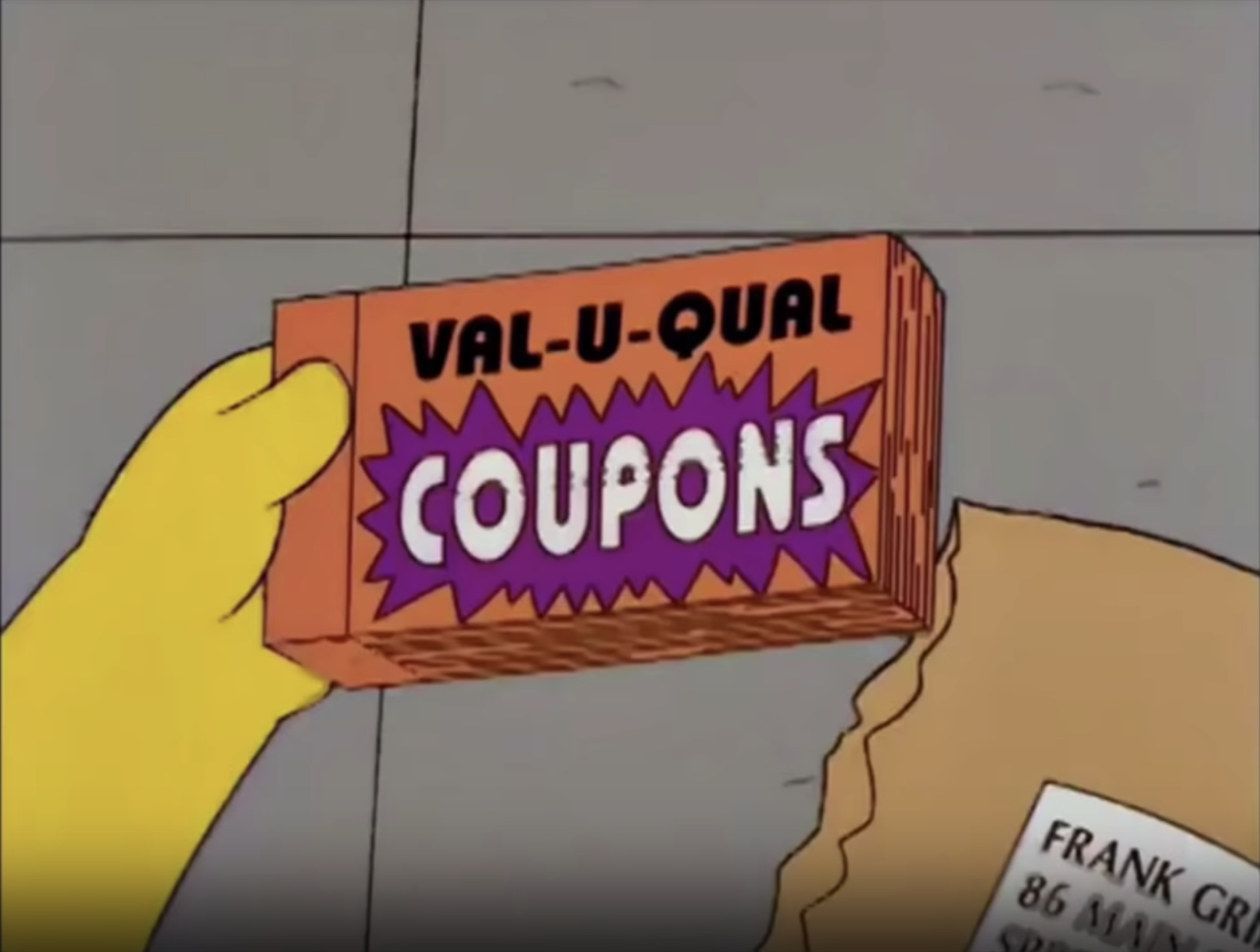 In "Sunday, Cruddy Sunday", it's revealed that Grimes was sent a Val-U-Qual coupon book before his death, placed in Springfield's dead letter room after he was killed. Bart later picked it out and gave Grimes' coupon book to Homer.