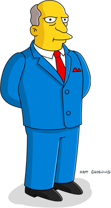 In "The Kid is All Right", he is shown to be a member of the Springfield Republican Party, who meet in an ominous tower usually accompanied by a lightning strike. Since he fired Ned for introducing prayer to school in "Sweet Seymour Skinner's Baadasssss Song" and advocated for a government grant to Springfield Elementary School in "Lisa Gets an "A"", he is likely a moderate Republican, in contrast to social conservatives like Ned or economic extremists like Mr. Burns.
