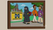 The Simpsons 17 years later. Maggie is 18, Marge is 53, Homer is 56, Bart and Milhouse are 27, Lisa is 25, and Zia is close to a year old. Maggie looks annoyed and presumably isn’t going to college. 2028