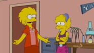 The Simpsons 16 years later. Maggie is 17, Marge is 52, Homer is 55, Bart and Milhouse are 26, and Lisa is 24. Lisa is pregnant with Zia, while Maggie looks bored. 2027