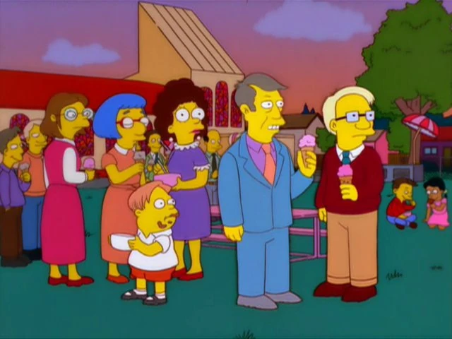 Once, when Martin Prince Sr. is seen among other attendees at the church's ice cream social, his hair is blond.