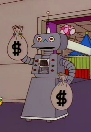 Investo is a robot from the made-up planet Oppertuniac. Bart pours coffee on it, which makes it start to smoke and spark. Investo falls over on his back and says, "Help, help, Security Code 30."