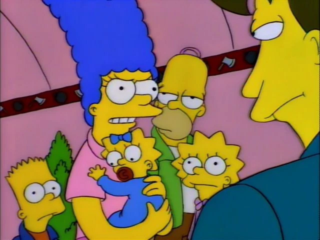 When Marge is complaining about the violence in The Itchy & Scratchy Show, the top spike of Maggie's hair repeatedly disappears.