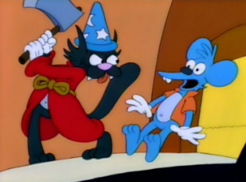 A toy depicting an Itchy & and Scratchy and Friends character named "Klu Klux Klam" is a reference to the Ku Klux Klan, as well as the tendency for TV shows to add needless characters to boost sagging ratings, and how cartoons of the past have characters that, to modern sensibilities, would be considered racially and culturally insensitive (some real-life examples include Mammy Two-Shoes [the Africa-American housekeeper/maid] from the Tom and Jerry cartoons, Sunflower the black centaur from Fantasia, and Speedy Gonzales and Pepe Le Pew from the Warner Bros./Looney Tunes cartoons).[6]