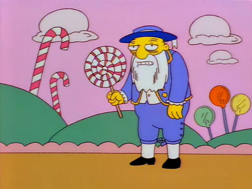 In "The Springfield Files", Jasper, under the mistaken belief that it was Wednesday, took some of his Wednesday pills until he learned it was actually Friday, which caused him to morph into a bizarre Lorax-like creature.