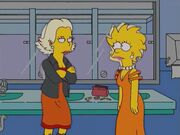 Eight years into the future Jenda is dating Bart Simpson. They attend senior prom together, and on the same night on a picnic, he proposes to her, but Jenda turns him down and breaks up with him due to him not having any plans for the future where he can provide for them. In order to win her back, Bart accepts an offer made by Mr. Burns to attend Yale on a scholarship, originally intended for Lisa. Jenda takes him back because he now has the scholarship and is "someone". Lisa, on the other hand, resigns herself to a life with Milhouse. Bart and Jenda take a walk and Jenda pressures Bart to have sex with her. Bart spots Professor Frink's house, remembering the astrology machine in the basement, and sees the dismal future Lisa has in store. Jenda is upset and demanding as she wanted to have sex with Bart and gives him an ultimatum: either Bart will take her now or leave her to save Lisa's future. Bart is torn between staying with Jenda and saving Lisa, but chooses Lisa and sets off to save Lisa, giving her the scholarship. It also implied that Jenda had a relationship with Todd Flanders.[1]