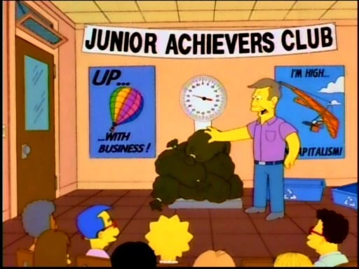 Mr. Burns once came to tell them how to be successful in business. Lisa asked him if his firm has its own recycling program.