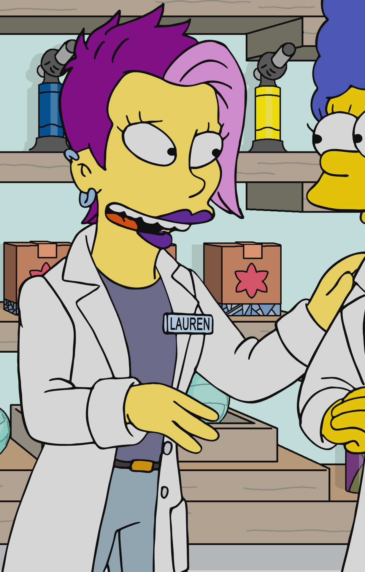 Lauren (voiced by Chelsea Peretti) is a marijuana dispensary employee who appears in Highway to Well. She is in charge of checking IDs. She wears purple lipstick and has her hair dyed purple. She was formerly employed at Well & Good before it closed down, and attended the opening party for The Drederick before it burned down.
