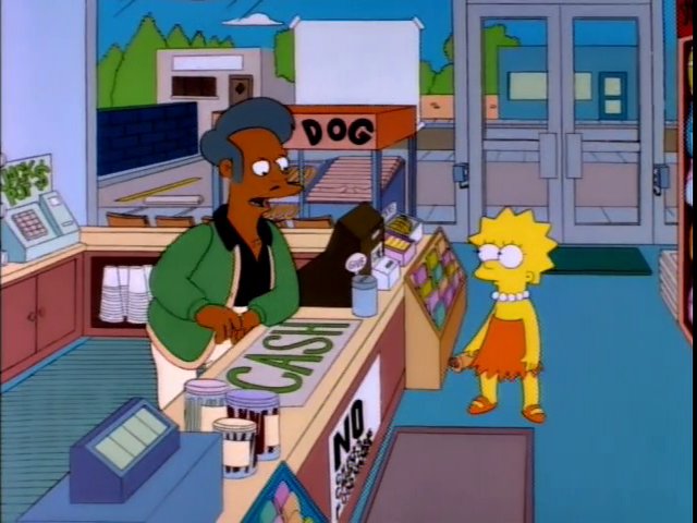 Abu telling Lisa the hot dog is tofu.
