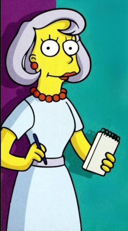 She did show an aggressive side when answering an angry letter from Bart in response for the constant rebuffments. She forced Krusty to read the letter, but remembering Krusty was illiterate, she surmised it as "the boy who never lost faith in you has lost faith in you!" She demanded Krusty have dinner with the Simpsons that evening or else she would resign immediately.