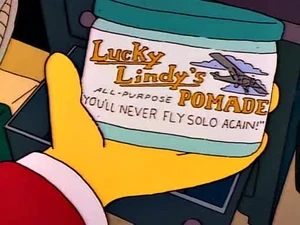 Abe Simpson uses this pomade as a styling aid on his hair. He tries to use some before a hot date , with his girlfriend Beatrice Simmons ,so he can get lucky but he has ran out of the product.