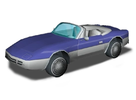 - Unlike its first appearance, the car is overhauled from a Pink Porsche Spyder to a Blue Convertible with white accents with design cues from the Chevrolet Corvette from 1985 possibly due to copyright.