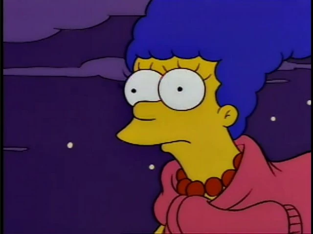 When Marge tries to figure out how to respond to Ruth's question about whether she'll support her car theft, the back-most bead on Marge's necklace repeatedly turns pink like her scarf.