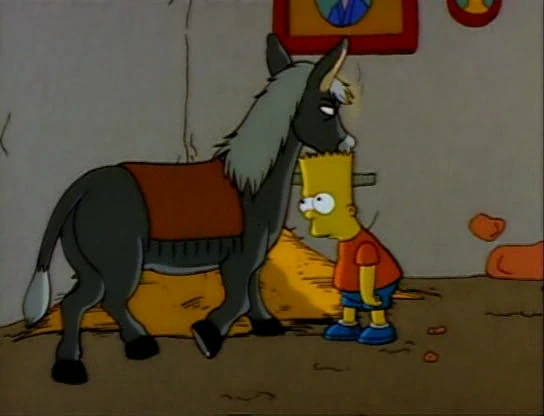 Maurice is the donkey of Cesar and Ugolin in France. While Bart stays at Cesar and Ugolin's farm, it is seen that they treated the donkey better than they treated Bart. He slept on hay when Bart slept on nothing but hard floor.