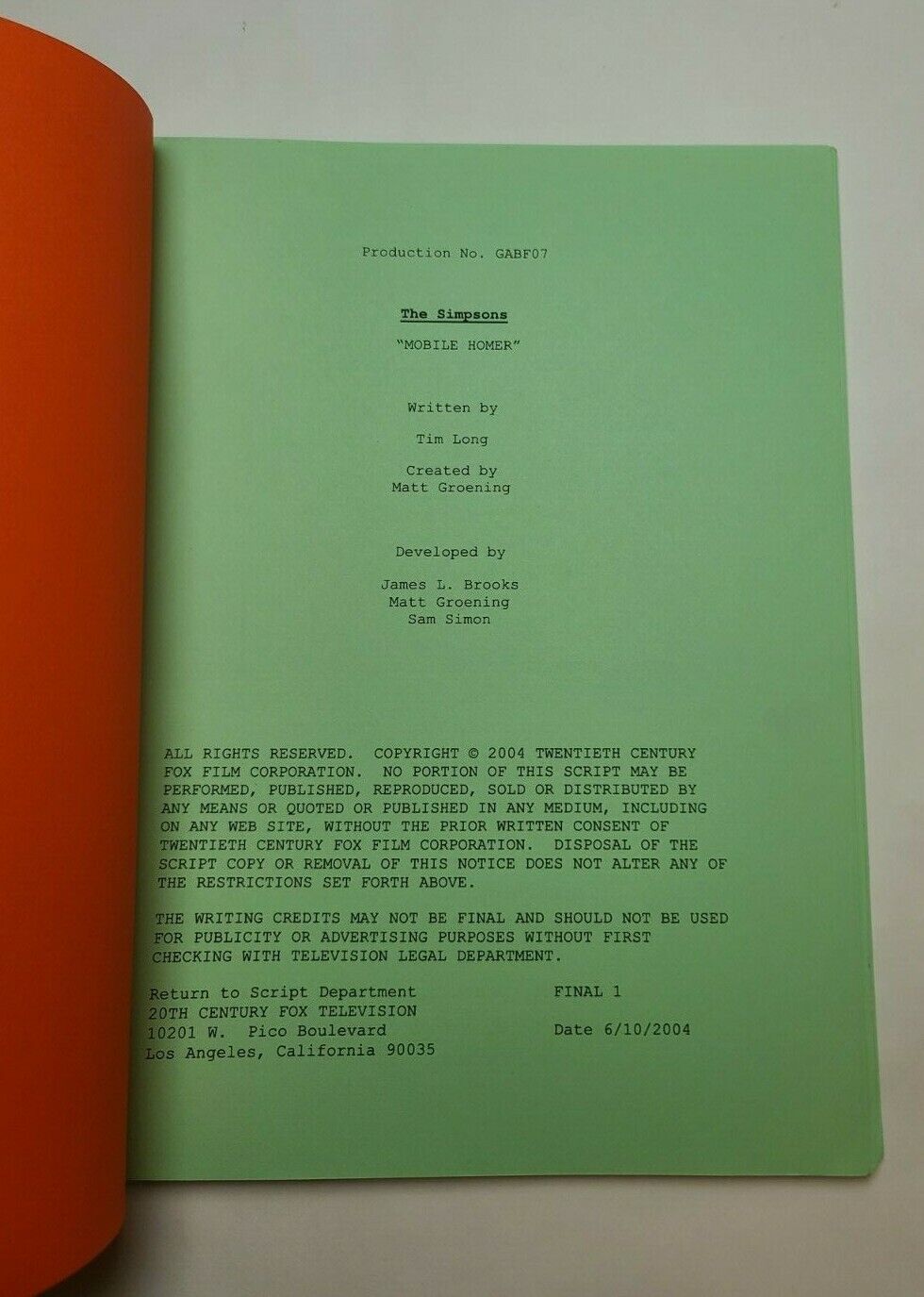 - The final draft for this episode was published on June 10, 2004.