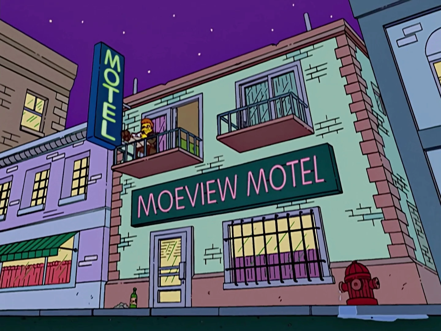 Moeview Motel is a motel opposite of Moe's Tavern where Snake Jailbird stayed at once.