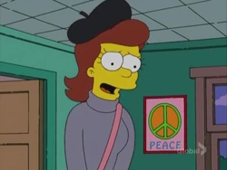 She was mentioned and seen in a flashback in D'oh-in' in the Wind as she named Homer and neither he or his dad, Abe know Homer's middle name "J." He learns of a mural she painted for him which also shown his full name, marking his middle name Jay. He also meets her radical friends Seth and Munchie who told him about how she brought him and Abe to Woodstock, inspiring Homer to be a hippie like his mother.