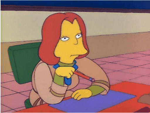 She was in charge of the debate club, which Marge and Artie Ziff were members of. Homer tried to join to impress Marge.
