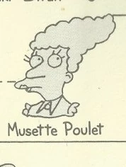 Musette Trousseau (née Poulet) was the daughter of Hervé Poulet and Brigitte "Kiki" Divan. She had a sister named Felice Poulet and a brother named Armand Poulet. She married Gilbert Trousseau and had 2 daughters and 2 sons.She is the great-great-great-great-great-great grandmother of Marge Simpson.