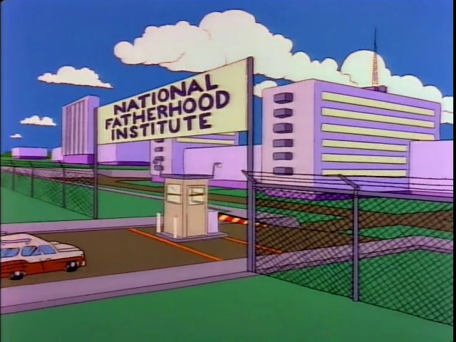 The National Fatherhood Institute is an organization focused on developing ideal father-child relationships. It releases quizzes to evaluate one's competence as a father. Homer failed the quiz and went to the Institute headquarters for assistance. Within the Institute, fathers and their sons enjoy recreational activities such as shooting, diving, and underwater reading.