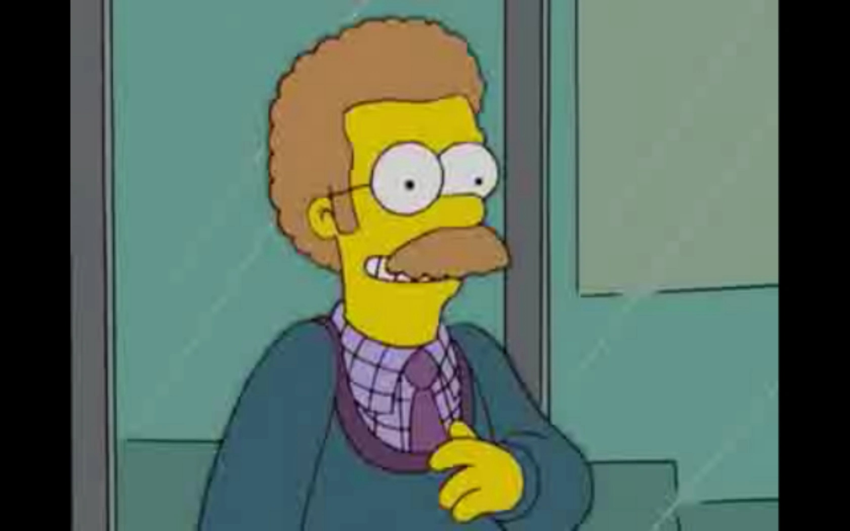 Nedward "Ned" Flanders, Jr., more commonly known as just Flanders, is the Simpson family's extremely religious next door neighbor. He is a genuinely well-meaning, good-natured person. Though firmly religious, he can be timid and something of an easy pushover. He is a major character in The Simpsons and a minor, recurring antagonist in the Treehouse of Horror episodes. Ned thoroughly worships God and strictly follows the Bible as literally as possible and is easily shocked when challenged on any point of dogma. He also owns the Leftorium and a home business, Flancrest Enterprises, which makes religious hook rugs. He also works as a member of the Springfield Volunteer Fire Department. He even (legally) owns the Simpsons' house, renting it out to the family at a low rate, showing that he would burn through much of his resources just to help his neighbors out. In Hurricane Neddy, Flanders was shown to be a kid 30 years ago in the show's floating timeline, but in Viva Ned Flanders, he claims to be 60 years old and looks younger thanks to following the 3 C's. Some fans believe he lied about being 60 in order to get a senior citizen's discount.