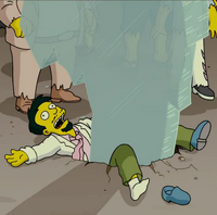 Nick Riviera is crushed by a large shard of glass in The Simpsons Movie
