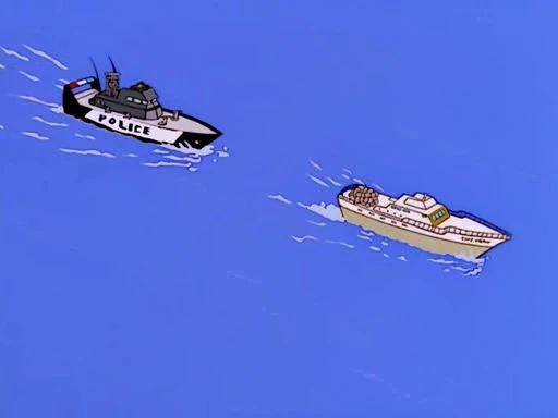Police boats were used when Homer Simpson, Ned Flanders, Bart Simpson, and Rod Flanders were missing during a raft race. They were used again after sugar was made illegal and Homer attempted to smuggle it from an island.