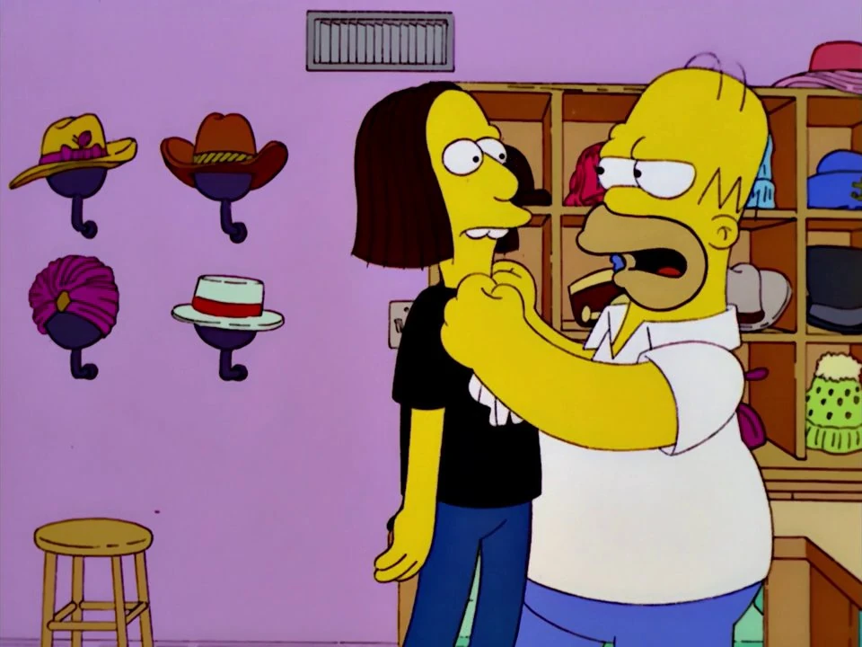 SpringShield collars Fat Tony, catching him gluing cotton balls on ferrets to sell to a pet shop, claiming they are toy poodles. They bugged one of the ferrets so they were able to find them, a depressed Wiggum sees the arrest on the news and tells Ralph he's done trying. Fat Tony then vows, over the radio, that he and his associates will gun Homer down if he doesn't skip town by noon the next day.