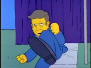 In addition, under extreme circumstances, Skinner when left extremely incensed can even drive him to borderline murderous actions. An especially notable instance of this was during the Sun Blocker incident, where he proceeded to duck out of the town hall meeting and intended to ambush Mr. Burns when he left. However, he was unable to actually do so because he took his mother's makeup by mistake (he was actually going for camouflage paint), with Superintendent Chalmers stumbling upon this just as Mr. Burns got shot. He also implied that he did dark stuff to Principal Kahoutek and his kid when they beat him to the punch regarding reporting a discovery of a celestial body. However, he wasn't always like this. In fact when Skinner opened Springfield Elementary he was shown to be much more carefree and there was a pool on the school grounds but following a prank where the water was replaced with worms and he was trapped for two weeks turned him into the stern teacher which everyone knew.