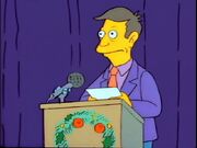 When he did receive a large grant from a board of directors, instead of using it to better fix the school, spends it on a billboard and later on a liquor store. Despite this, he does ultimately love the concept of school, as in his debut appearance, he told Bart that there's "learning afoot" when trying to get him to class (either not aware or not caring that Nelson just threatened Bart with a fight at the school yard); and in Bart's Comet, he reacted with anguish when he learned that President Clinton declared that school was for losers on the headline, being far more in dismay over this than either Bart beating Skinner to the punch of a celestial object or even his accidental release of a vandalized weather balloon (which acted as the reason he had Bart present in the first place) he had just retrieved from learning of the aforementioned event.