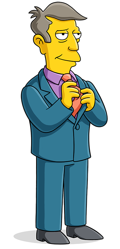 He has yellow skin, short, straight, grey hair styled in a generic fashion, and a large nose. Unlike most Simpsons characters, he has a gap between his eyes.