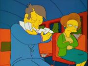 In an accident involving both Skinner and Chalmers, Chalmers showed grief over Skinner before he realized he was still alive. Although he likes to maintain the image of a strict disciplinarian, he is often weak-willed and nervous and has a very unhealthy dependence on his mother who constantly makes demands from him. She addresses him by the nickname "Spanky." Also, it was heavily implied that Seymour Skinner suffers from post-traumatic stress disorder from his days in Vietnam, where he spent eighteen months as a prisoner of war.[12] Seeing his entire platoon devoured by an elephant was one of the many things that led to the development of his post-traumatic stress disorder. Once, his PTSD kicked in in the middle of trying to alert students of a prank that Bart pulled involving heart message candies with crude statements on the PA where he remembered his war buddy Johnny being killed while he was writing a Valentine's Day card for his girlfriend back at home, causing Bart to think he "broke [Skinner's] brain".[13] However, one PTSD related episode didn't deal with the war itself, but rather his experiences after the war, where he was apparently spat upon by people who were presumably anti-Vietnam when he was earlier promised with a parade.[14]