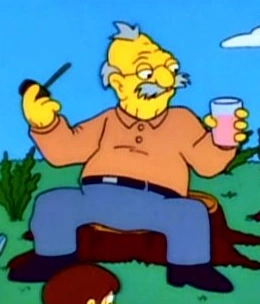 He is like his Springfield counterpart, Abe Simpson, in many ways. He has similar facial features and wears similar clothing. They also both wear glasses and tell stories, even saying similar sentences.