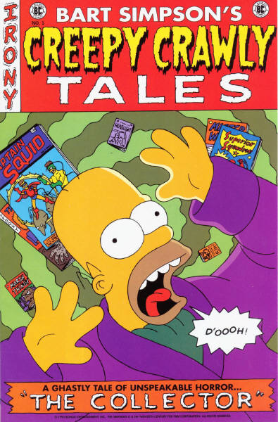 Simpsons Comics #1 is the first Simpsons Comics. In most countries, it contained the main story, "The Amazing Colossal Homer" and the secondary story, "Bart Simpson's Creepy Crawly Tales "The Collector". A one included with a keyring was released in 2004.