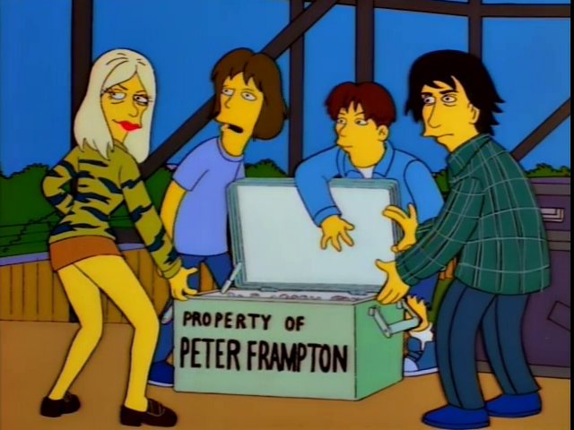 The members of the band repeatedly try and succeed to steal Peter Frampton's food.